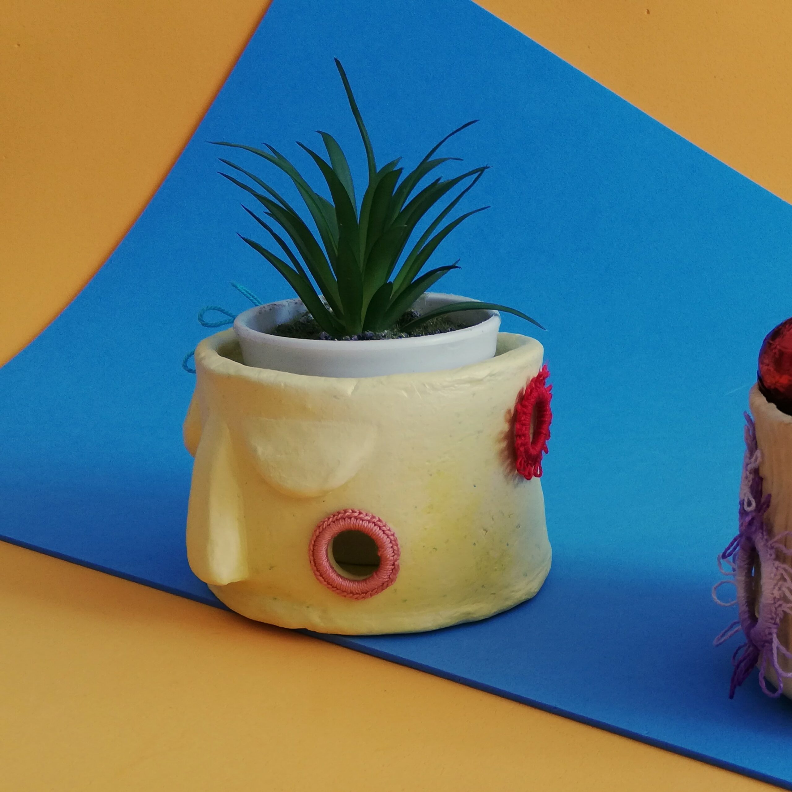Material: Massa de modelar pintada à mão com acabamentos em crochet.